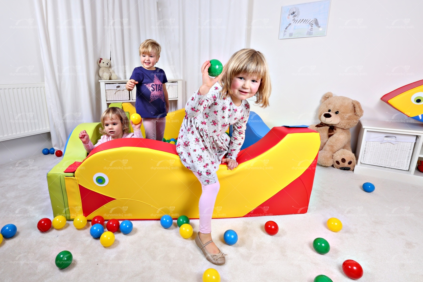 Unikátní molitanový bazén s jedinečným tvarem a designem. Aplikace jsou našité. Chráněný průmyslový vzor. Na spodu bazénu je dno silné 5 cm. Potah z kvalitního polyesteru, lze sundat a vyprat. Míčky dodáváme zvlášť.