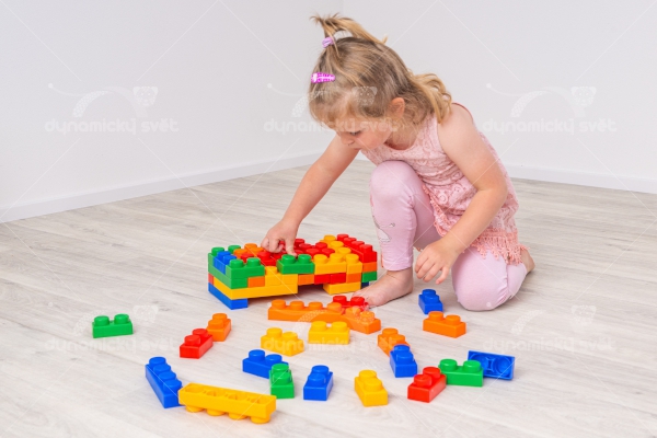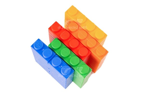 Velice kvalitní stavebnice z polypropylenu, certifikovaná pro děti od 3 měsíců. Měkký a pružný materiál, příjemný na omak. 60 ks v balení. Složení: 20 ks velkých kostek (14 x 3,5 x 2,5 cm) + 40 ks malých kostek (7 x 3,5 x 2,5 cm)